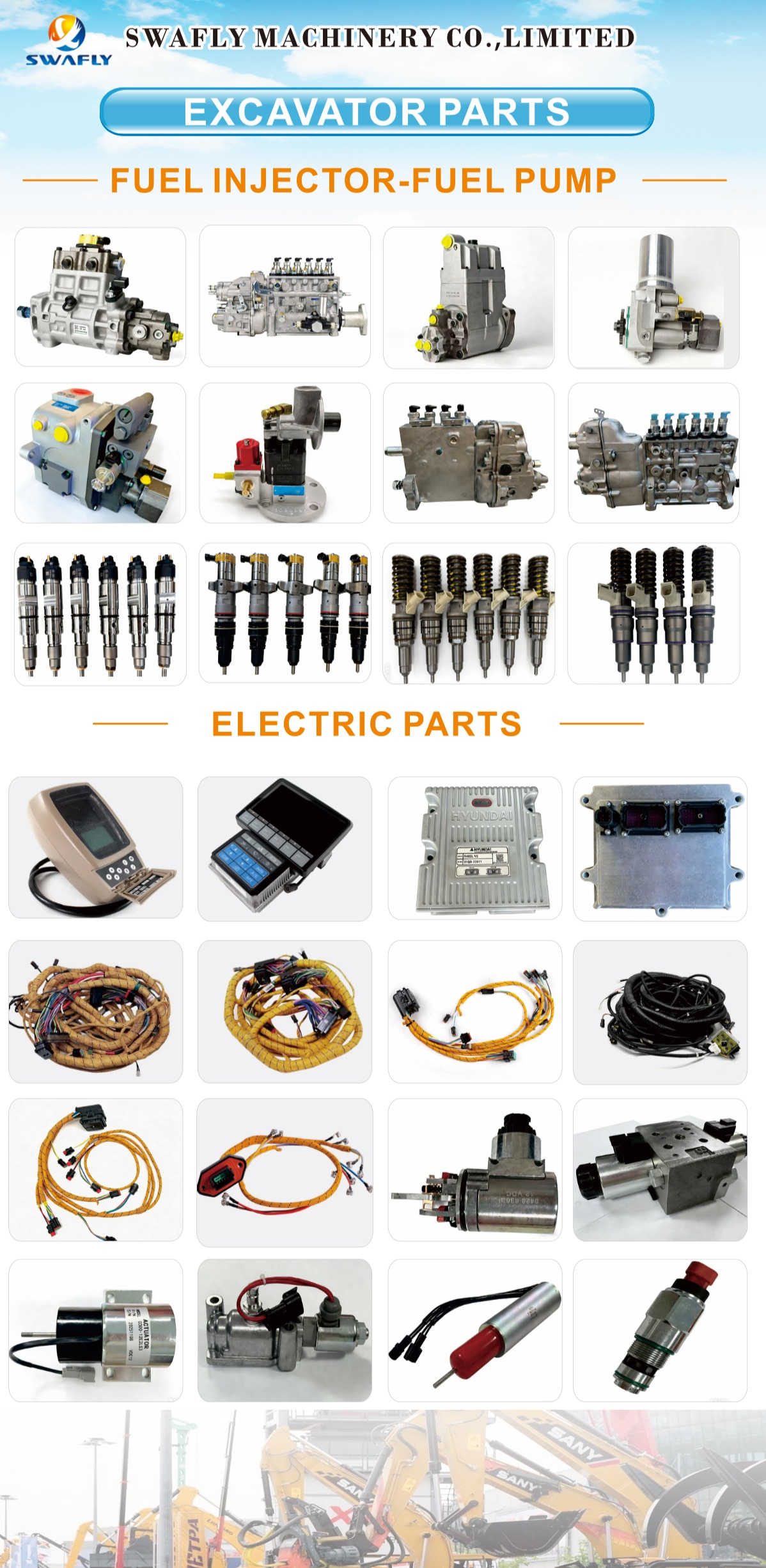 새로운 추가 사항은 주로 두 가지 범주를 포함합니다. 연료 시스템 섹션에서 Swafly는 이제 Caterpillar, Komatsu, Hitachi, Hyundai 및 Volvo를 포함한 인기 굴삭기 브랜드에 적합한 훨씬 더 다양한 분사 펌프와 연료 분사기를 제공합니다. 인라인 펌프, 분배기 펌프, 커먼 레일 인젝터 등 고객은 단일 장치 또는 전체 세트(6개 또는 8개 인젝터)를 재고에서 직접 얻을 수 있습니다.